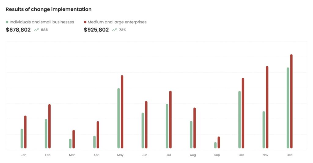 Result: Revenue growth of nearly 50% for small businesses and 70% for large enterprises